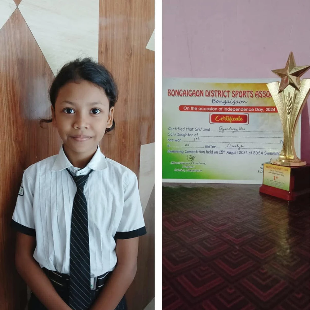 Gyandeepa Das (Class IV) secured 1st Prize in the Swimming Competition held on 15th August 2024 at BDSA Swimming Pool, organized by the Bongaigaon District Sports Association
